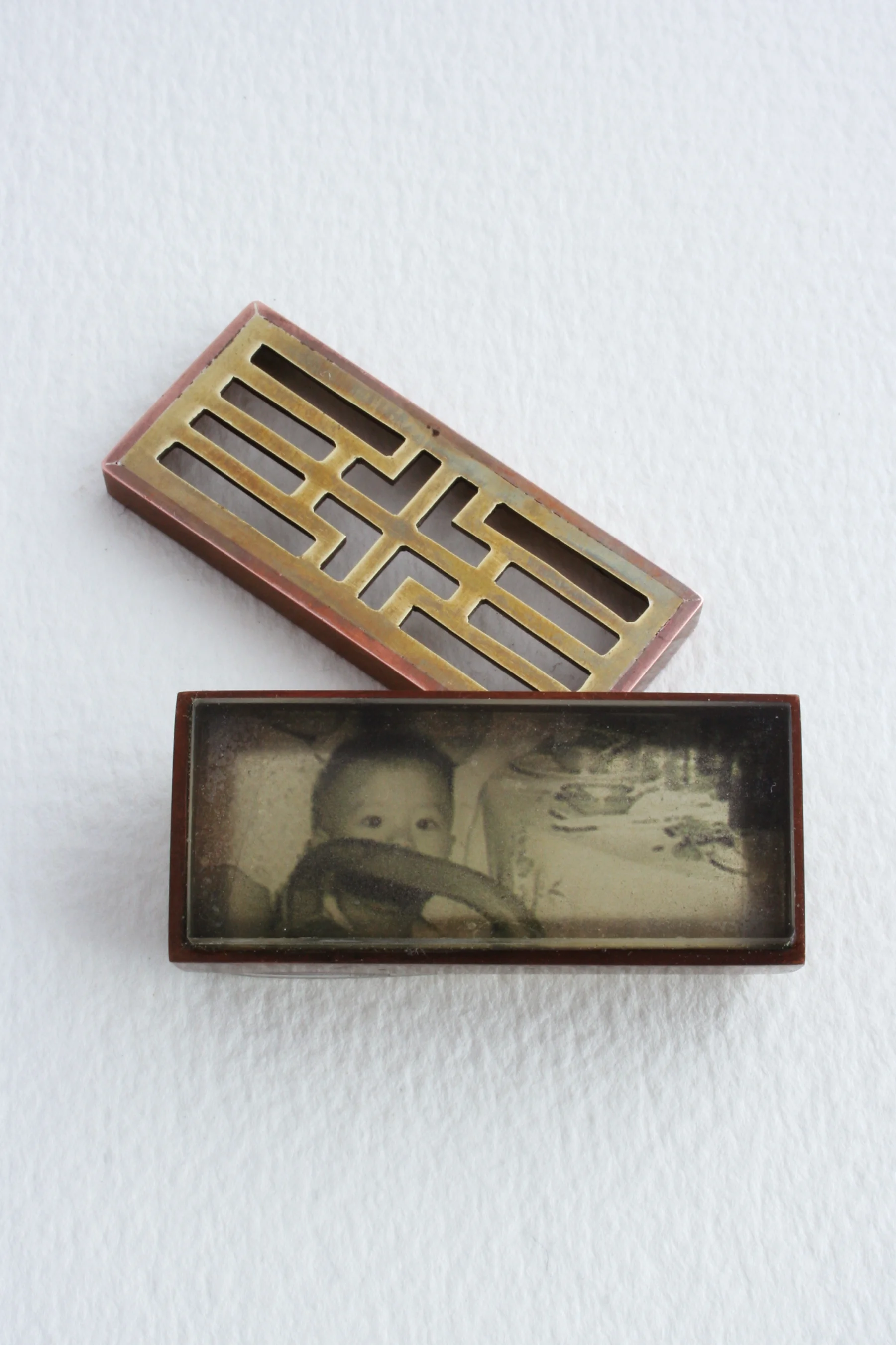 Details: copper, brass, sterling silver, walnut wood, polyester resin, mulberry paper, image transfer paper, acrylic sheet